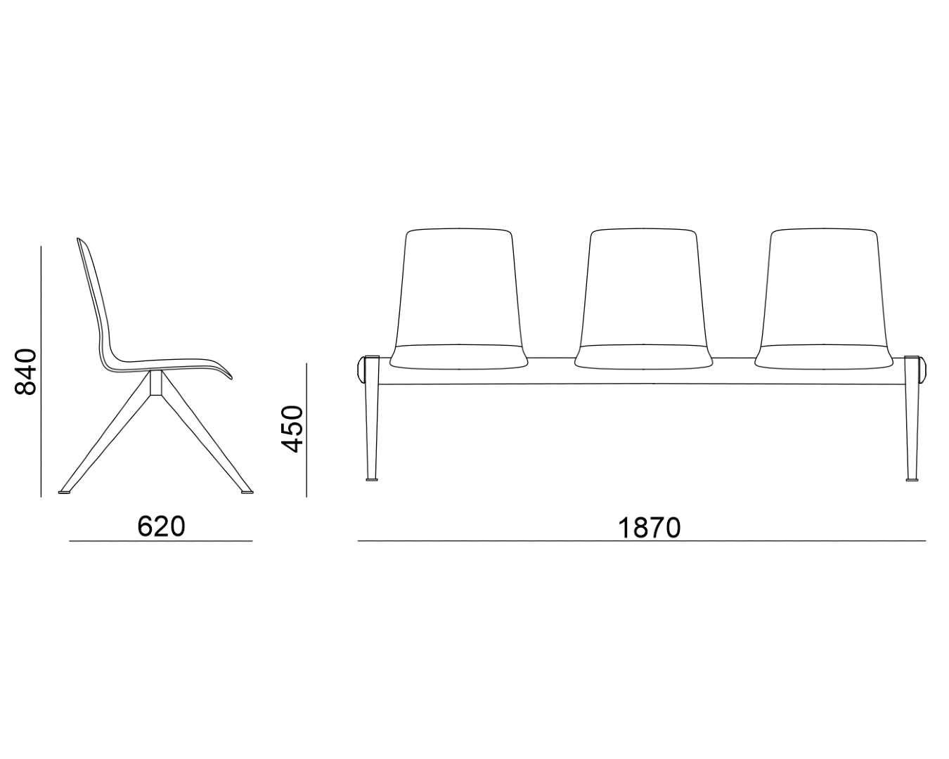 Die Basis aus massivem Buchenholz verleiht der Bank eine leichte, moderne Ausstrahlung und bringt natürliche Wärme in Wartezonen, Empfangsbereiche und öffentliche Räume. Durch die Möglichkeit, einzelne Segmente mit verschiedenen Stoffen zu beziehen, entsteht ein individueller Look mit ganz eigenem Charakter.