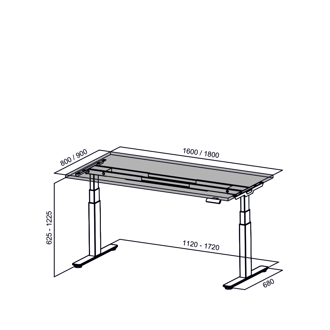 Zwei leise integrierte Motoren sorgen für eine ruhige, gleichmässige Höhenverstellung. Über das Bedienpanel können Sie Ihre Lieblingshöhen einfach speichern und jederzeit abrufen.