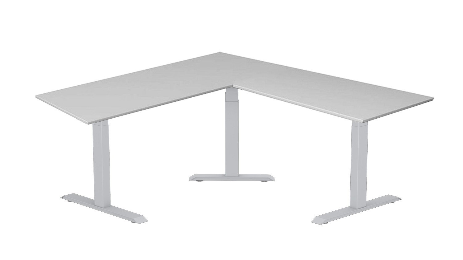 Der FlexLift L bietet eine leise, gleichmässige Höhenverstellung und ist optimal für grosse L- und Eckschreibtischegeeignet.