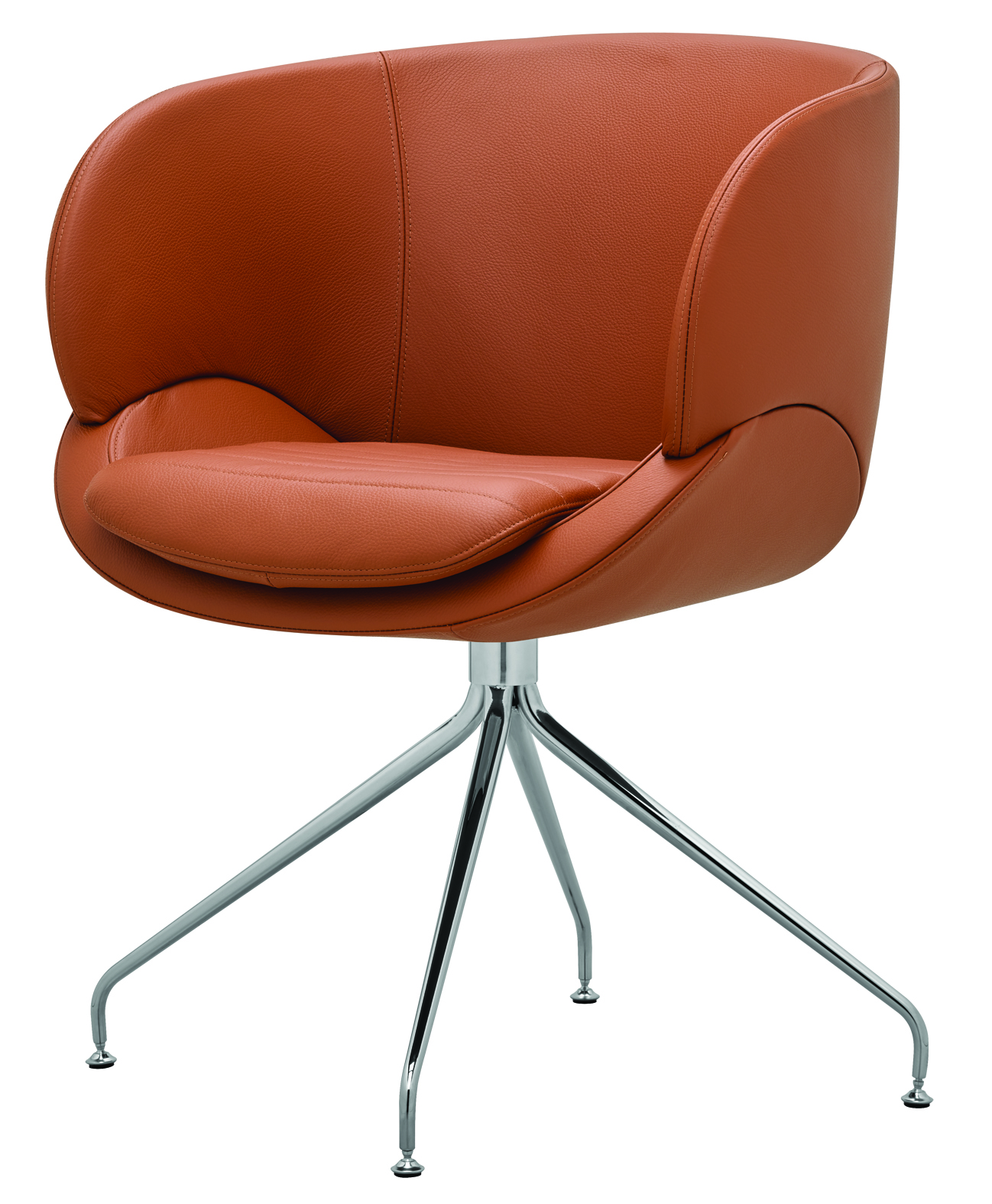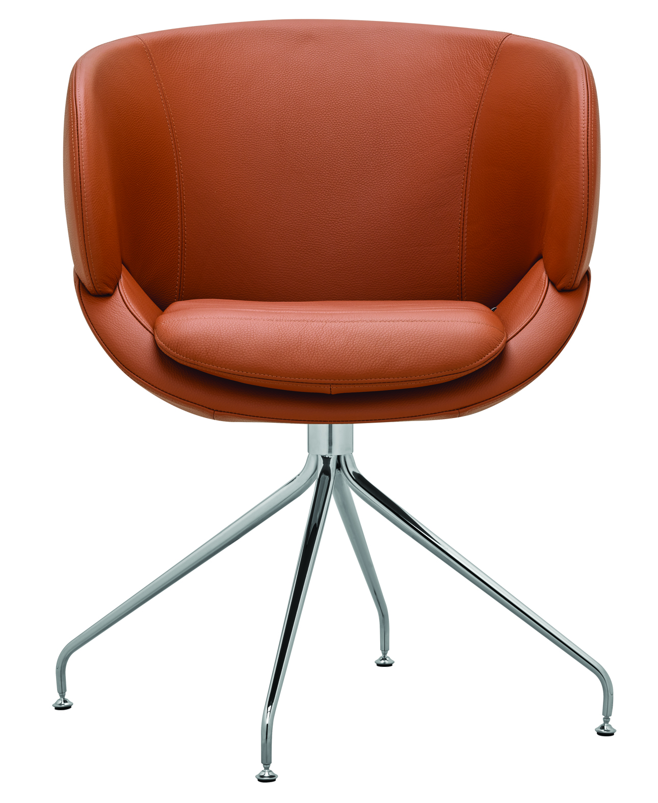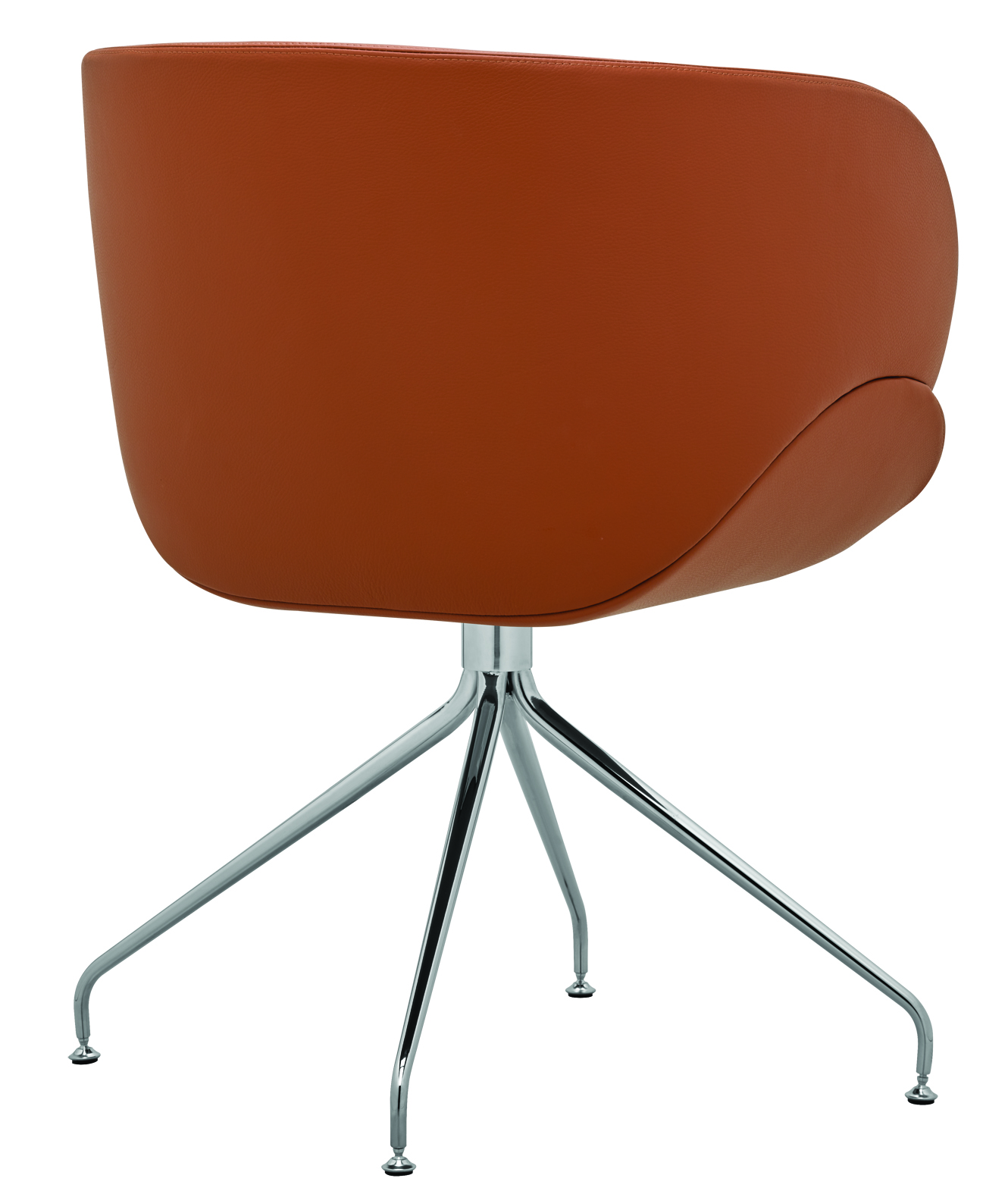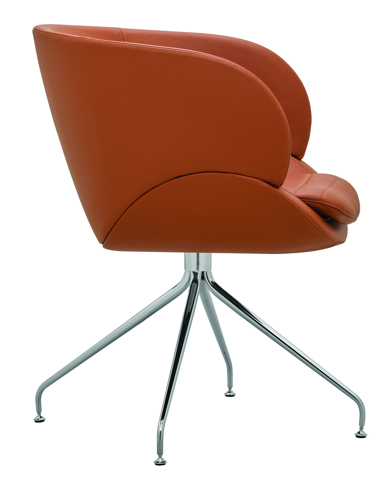Der Sessel steht auf einem markanten Spinnen-Gestell aus konischen Rohren, das ihm eine leichte, moderne Silhouette verleiht und zugleich hohe Stabilität bietet. Dank der Drehfunktion lässt sich der CV 870.03 flexibel im Raum bewegen, ideal für Lounges, Büros und Empfangsbereiche.