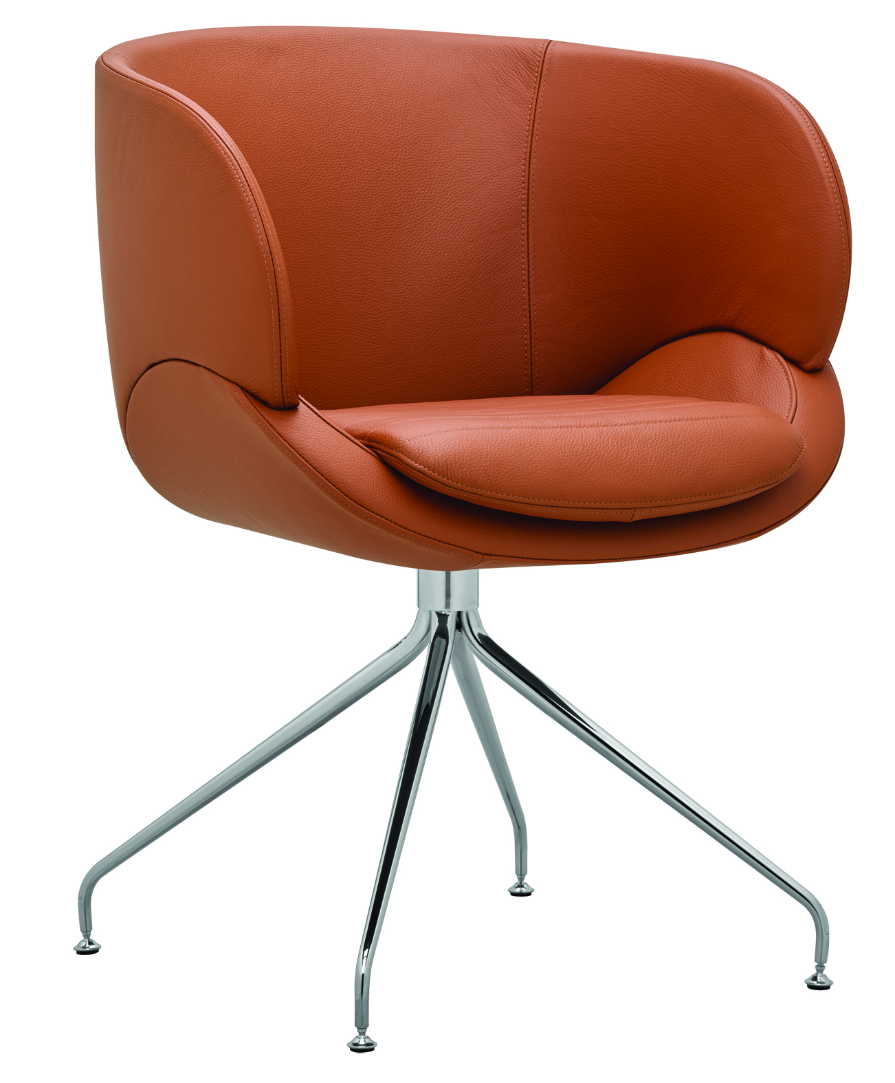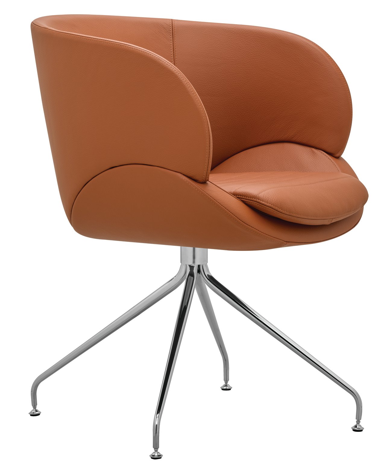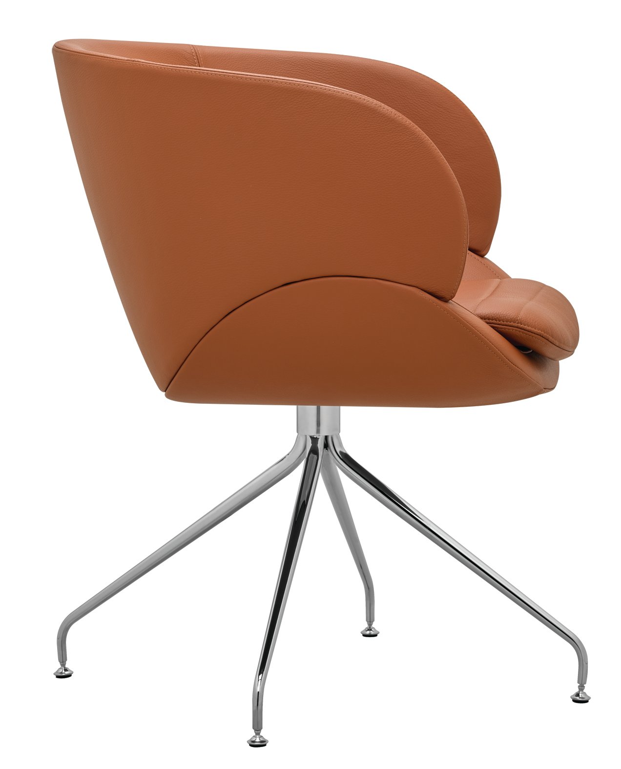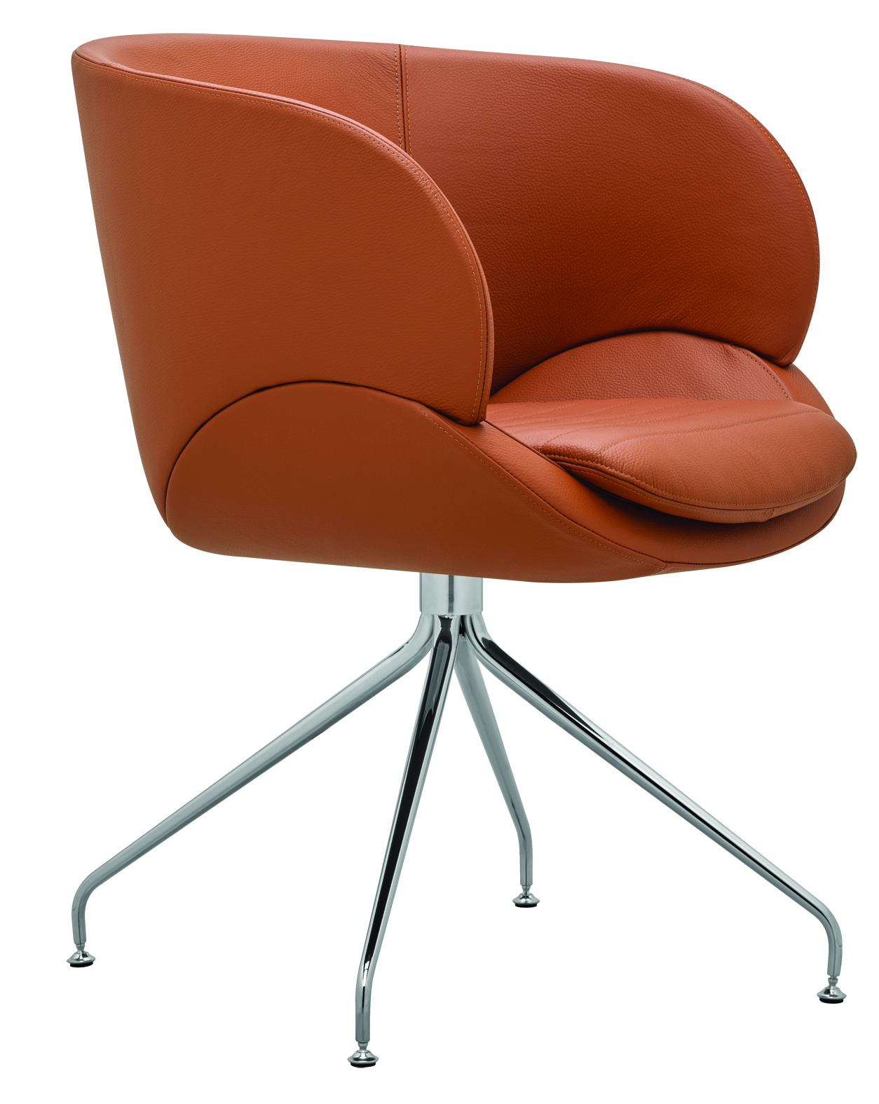 Der Sessel steht auf einem markanten Spinnen-Gestell aus konischen Rohren, das ihm eine leichte, moderne Silhouette verleiht und zugleich hohe Stabilität bietet. Dank der Drehfunktion lässt sich der CV 870.03 flexibel im Raum bewegen, ideal für Lounges, Büros und Empfangsbereiche.