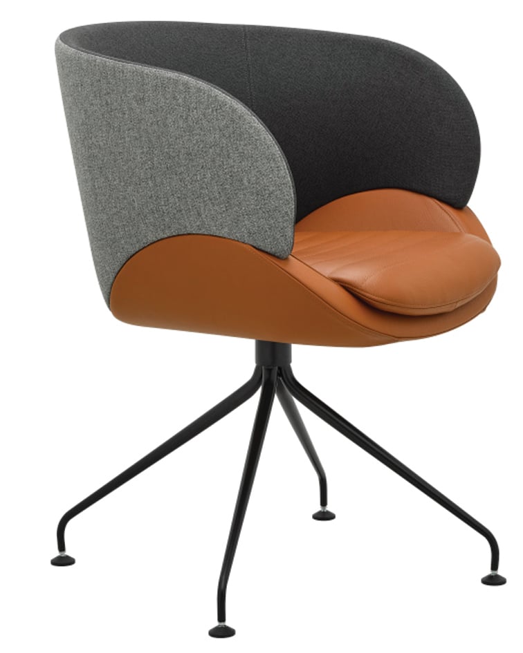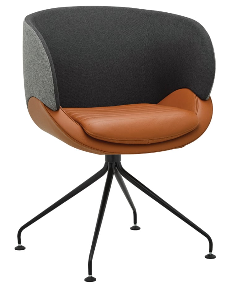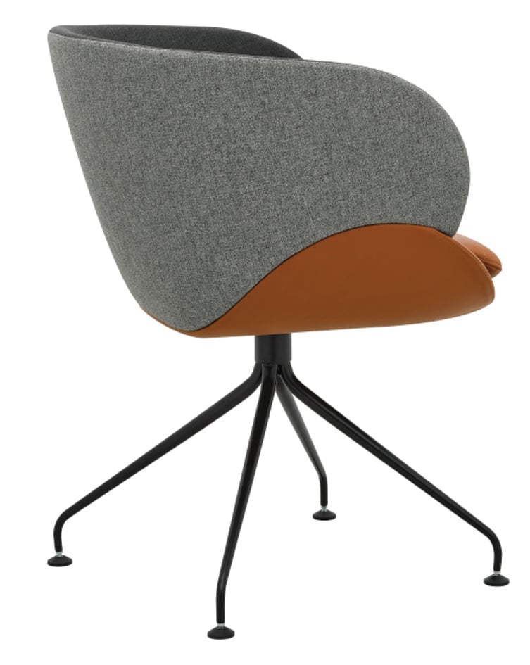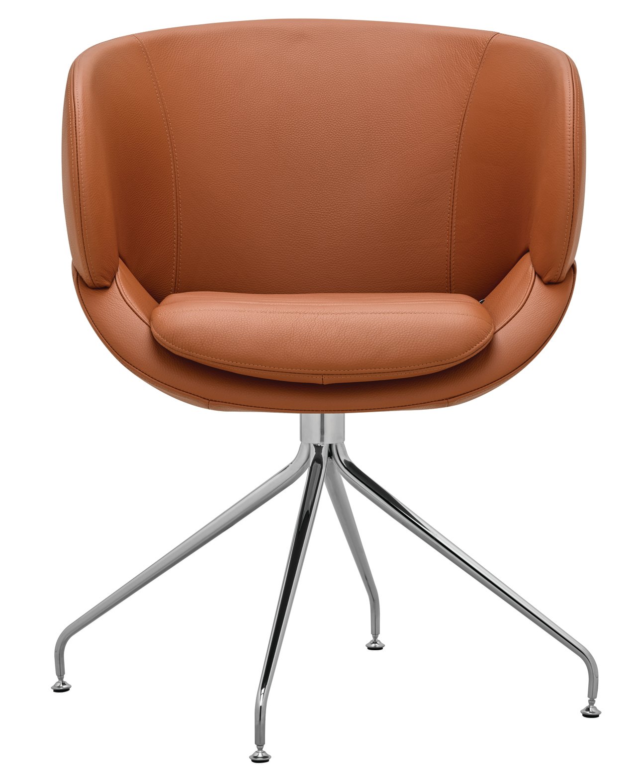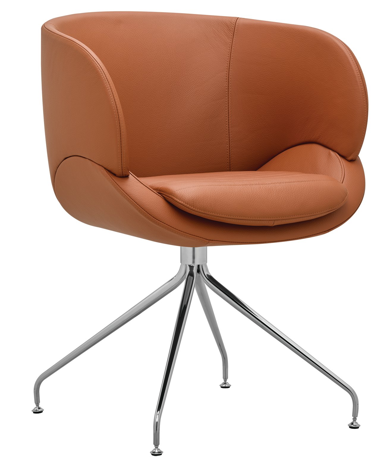 Der Sessel steht auf einem markanten Spinnen-Gestell aus konischen Rohren, das ihm eine leichte, moderne Silhouette verleiht und zugleich hohe Stabilität bietet. Dank der Drehfunktion lässt sich der CV 870.03 flexibel im Raum bewegen, ideal für Lounges, Büros und Empfangsbereiche.