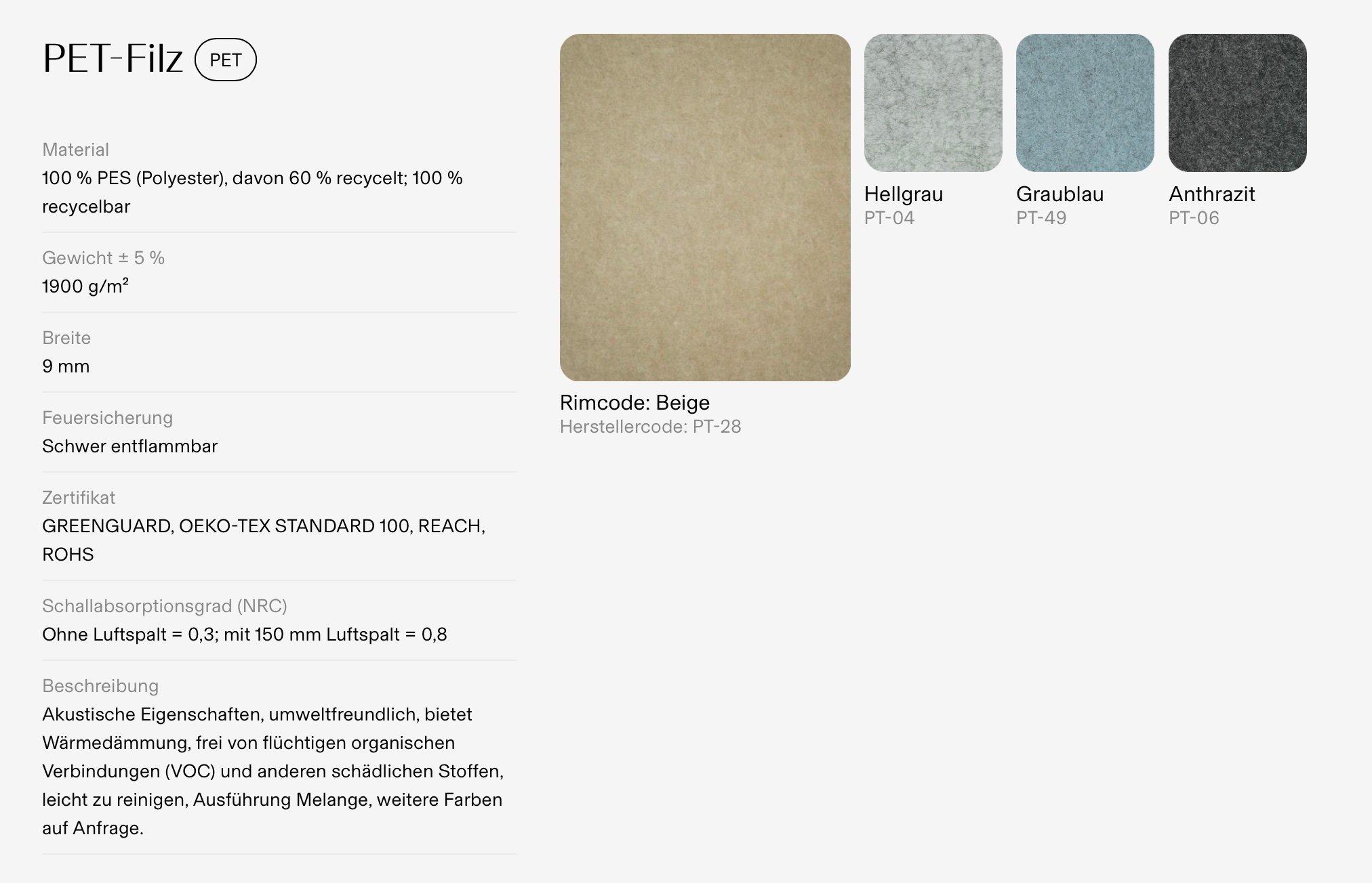 Anthrazit · Hellgrau · Graublau · Beige